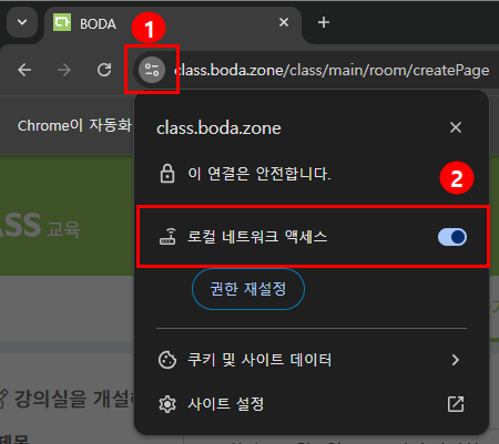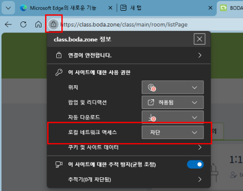 최신 웹 환경에서 화상솔루션 접속 시 ‘로컬 네트워크 연결’ 허용을 요청하는 팝업이 표출됩니다.